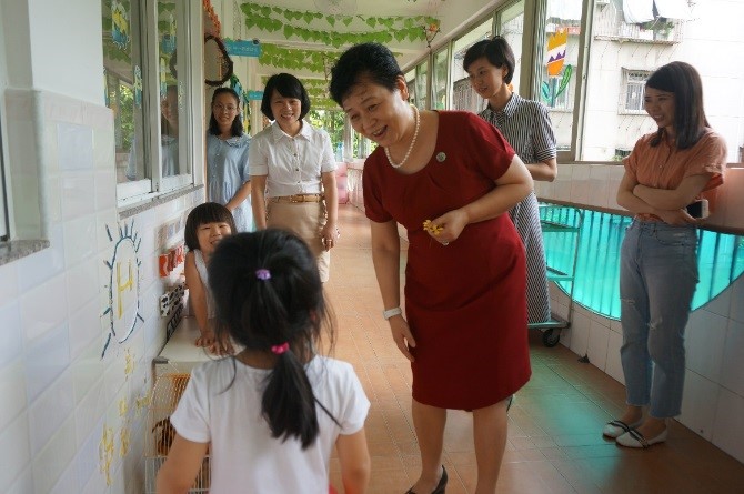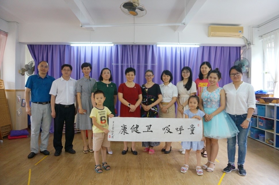 张建华书记一行参观了幼儿园食堂、户外活动区、课室及午休区等环境设施,详细了解了幼儿园课程、活动安排和保教工作。张建华书记还认真询问查看了幼儿园各项安全措施,并与大家一同观看了正在排练室紧锣密鼓准备的童话剧《同呼吸卫健康》。孩子们热情大方地与张建华一行问好,童言稚语和天真烂漫深深地感染了大家。