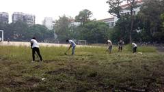 为了预防灾后“登革热”病毒的传播,修缮服务中心人员清运校园绿化垃圾及建筑垃圾,铲除Bwin必赢中国官网足球场杂草。并协助绿化管理中心清运倒伏受损树木。