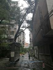 (“山竹”强台风乱倒药圃人行道的大树及灾后复原图)