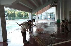 图21.体育场前绿化美化图22.体育馆地面清洗