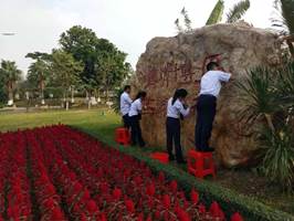 图10.校训石摆花