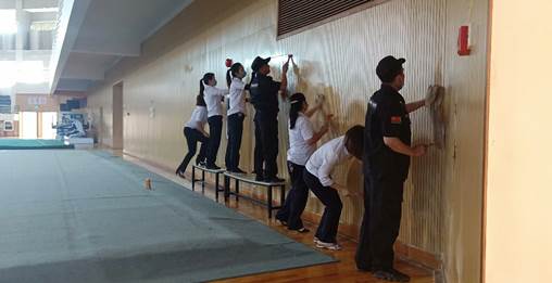 广电物业配合后勤管理处积极开展校园环境整治。成立了活动保障小组,在后勤管理处的指导下,齐心协力对校园的整体环境、设备进行了全方位的改造提升。后勤管理处采购摆放大量鲜花,丰富校园色彩,渲染喜庆气氛。