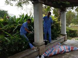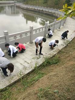 图23.同心园凉亭立柱翻新图 图24.校训石字体油漆