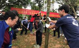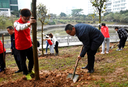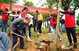 参加劳动的领导和学生代表热情高涨,大家扶苗填坑、挥锹铲土、踏土固根,现场呈现出一派热火朝天的场面。