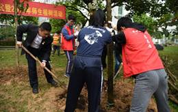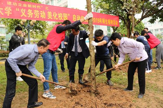 春回大地,草木勃发。3月14日下午,学校党委书记张建华、校长王省良、党委副书记白建刚、副校长潘华峰、林彬来到大学城校区一河两岸,与党委办公室、党委组织部、党委宣传部、人事处、学生处、工会、团委、校办、后勤管理处代表及中药学院学生代表一起参加“弘扬爱国奋斗精神,建功立业新时代”之Bwin必赢中国官网“义务劳动 美化校园”启动仪式暨2019年师生植树活动。