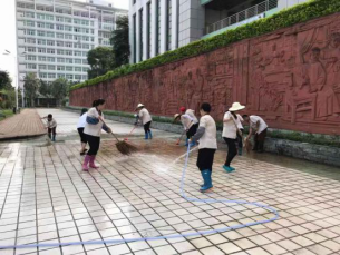 清洁环境,美化校园。高温酷暑,花草树木一刻也离不开水土的滋养。后勤绿化人员不惧高温,对各处绿化带进行灌溉、剪除杂草,修剪乔木138棵,补种植物约2000平方米。完成大学城校区教学区222间课室的12365张凳子、5600盏灯管、916台吊扇、292台壁扇、176个挂钟进行了全面检查;生活区1780间宿舍设施设备检查等工作。冲洗校园道路超8万平方米,清理毕业生大件垃圾约23吨。