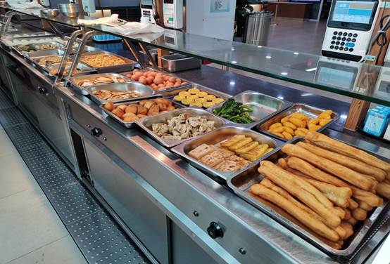 有了这些,康美苑可以自己动手,现炒现卖,早餐品种从原来的十多个添至三十多个,改善了菜品的质量,满足了教职工对菜式多元化的需求,完成了一个从简单售卖点到食药监局承认的规范生产加工场所的蜕变。