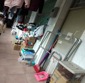 会后后勤潘伟增书记立即联系了学生处、研究生院等部门召开联动会议,各部门积极响应,联系了相关辅导员配合整改工作。25位辅导员(本专科生各院系13人、研究生各院系12人)和后勤管理处物业服务部10多名员工紧密配合,经过5天的不懈努力,对8栋宿舍310间(本专科生宿舍209间,研究生宿舍101间)宿舍门前杂物进行了清理,摆放在走廊中的64台各类洗衣机搬回各自宿舍,将226辆自行车(电动车)清运至指定区域存放,搬运大量大件物品、座椅、健生器材等杂物至空房,统一堆放便于后期认领。清运杂物的同时各楼栋保洁人员对公共厕所、走廊、墙面、栏杆等公共区域进行清洗,宿舍环境卫生有了明显的改善。