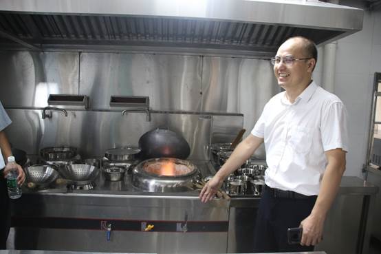 10时10分,潘华峰副校长开动点火机关,点燃了食堂运营的“第一把火”。