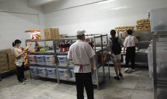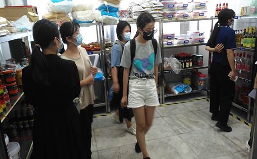 学生代表实地参观了食堂环境卫生、食品留样、餐具清洗消毒等功能间,对食品原料采购及储存等工作流程与食堂管理人员进行了面对面的交流。