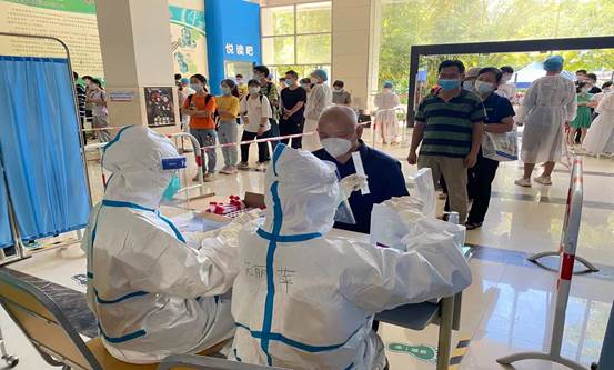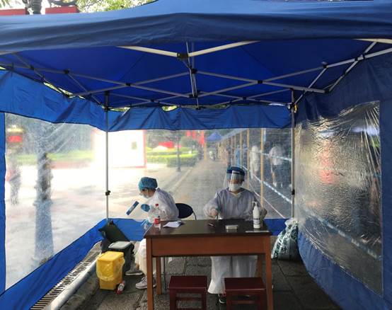 为全面筑牢疫情防控防线,杜绝疫情在校园扩散的可能,学校领导高度重视,在校园内即刻开展大规模返校师生核酸检测行动。三元里门诊部收到通知后,第一时间做出工作部署,提前安排人员协助布置好检测场地。在检测期间积极维护现场检测秩序,协助解决现场医疗救助需求,同时尽可能为现场检测的广大师生提供便利的后勤保障工作,以保证核酸检测工作的顺利开展。在三元里门诊部和相关部门的精诚协作下,两次核酸检测共采集标本4766份。