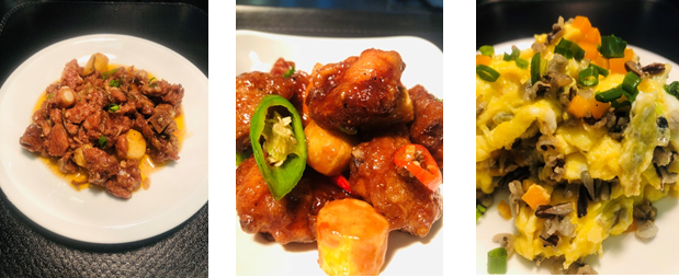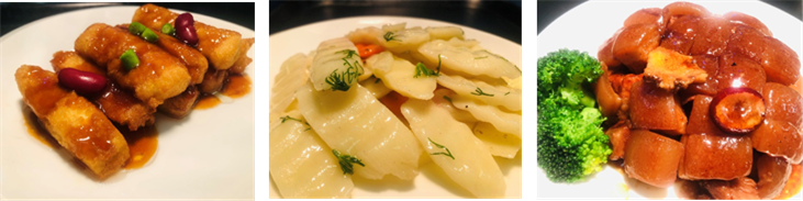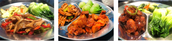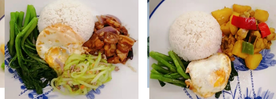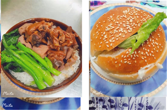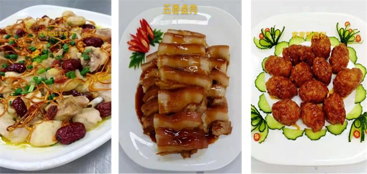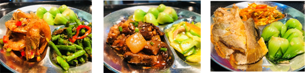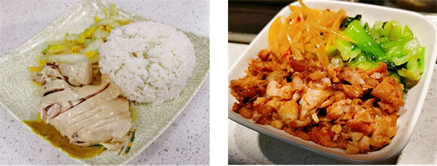 冬菇蒸滑鸡套餐、烤鸡腿套餐、梅菜肉饼套餐