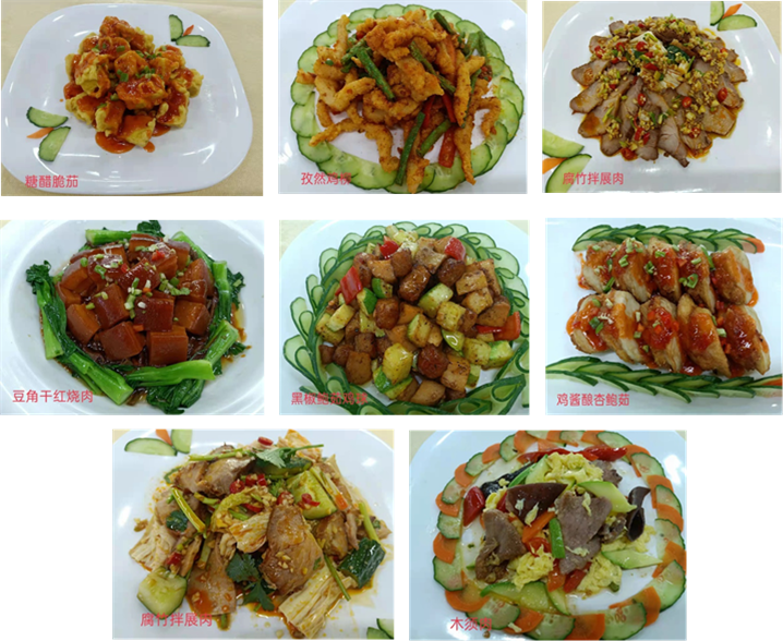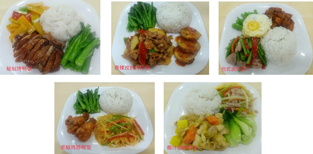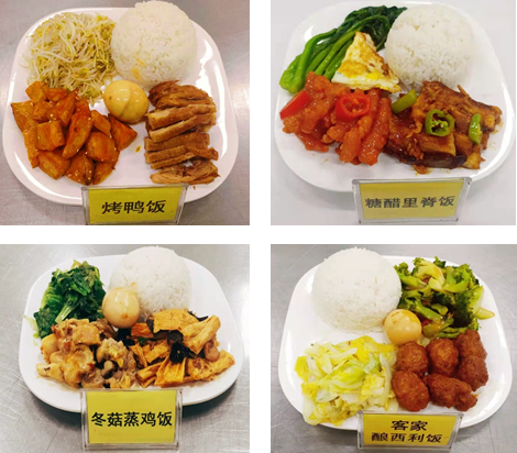 白切鸡套餐、鸡蛋梅菜肉饼套餐、土豆咖喱鸡套餐、冬瓜焖鸭套餐