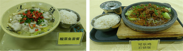 泡椒滑肝尖套餐、手撕鸡套餐、红烧肉套餐、烧鸡套餐
