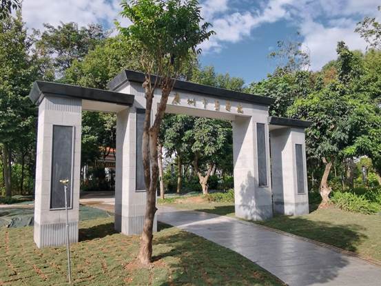 早期校门仿建1924年广东中医药专科学校校门。广东中医药专科学校是近代中国南方规模最大、办学时间最长的中医学校。不仅为中医中药的保存和发展做出不可磨灭的贡献,而且培养出了罗元恺、邓铁涛等一批中医大师。早期校门通过红砖芯切片饰面和铁艺栏杆的巧妙组合,还原1924年校门外轮廓,营造民国时期清水红砖墙的建筑风格。