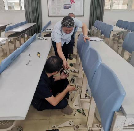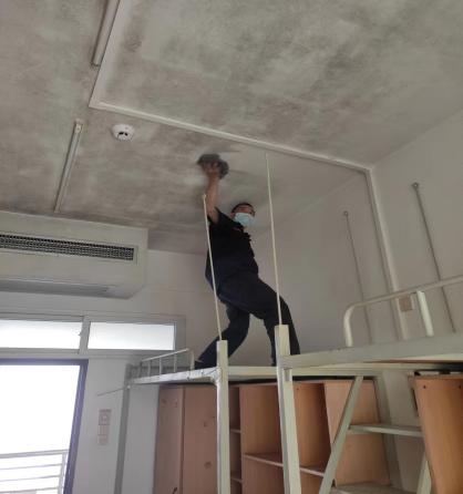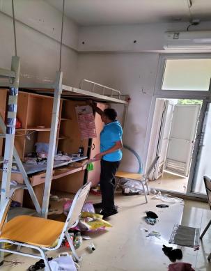 毕业生离校后,物业工作人员加班加点开始全面清扫毕业生宿舍,对宿舍内的家具、设备设施进行逐一检修,并安排两校区物业工作人员开展交叉互查。两校区共维修1759间宿舍、清扫宿舍1541间,为迎新做好充足准备。