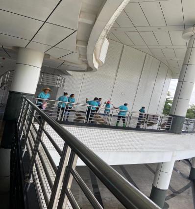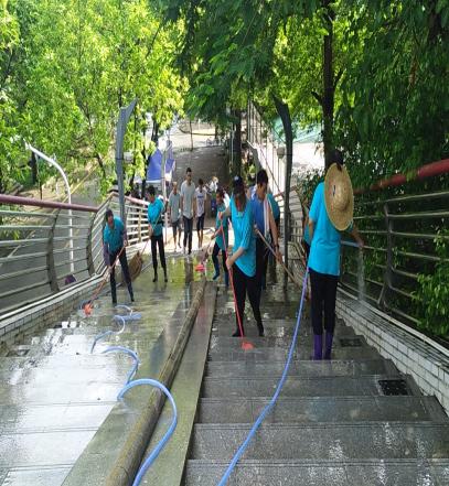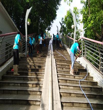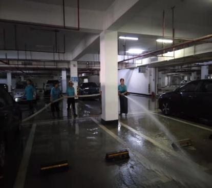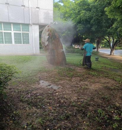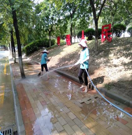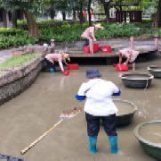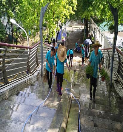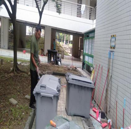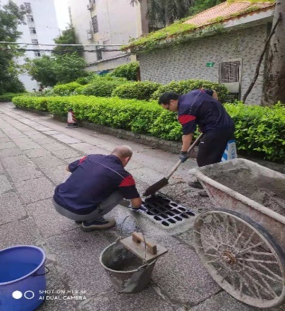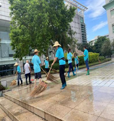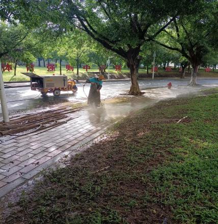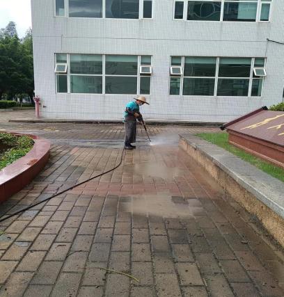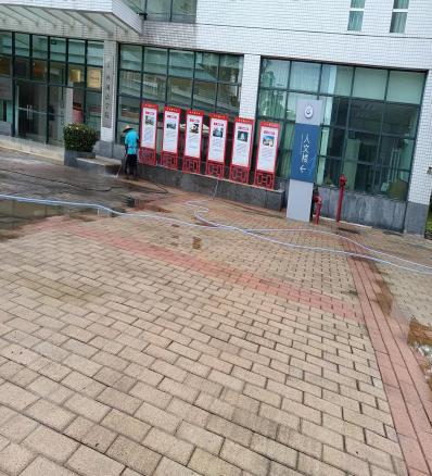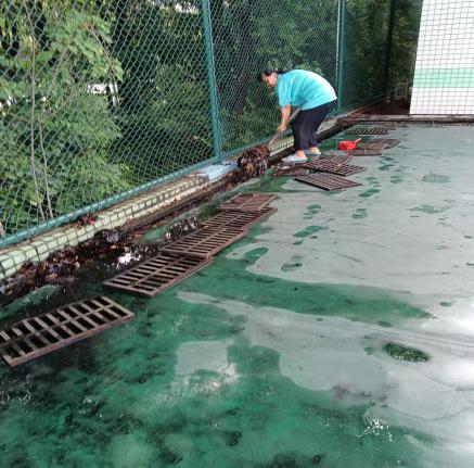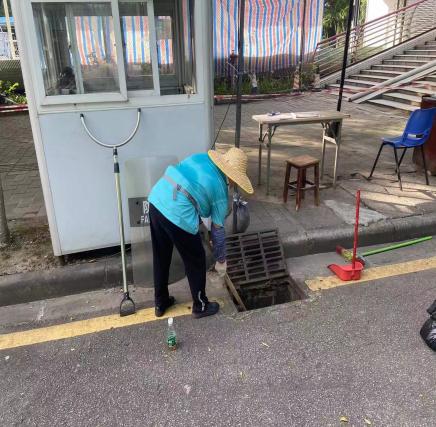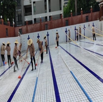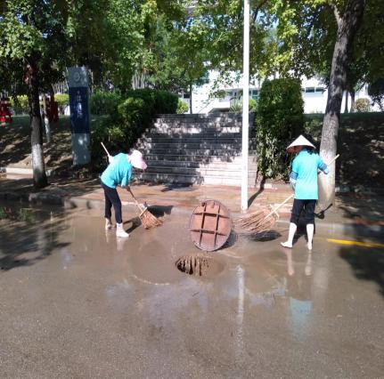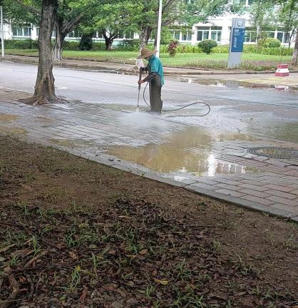 除了日常的保洁外,物业工作人员利用暑期对校园开展了深度维护和保洁。对发黑、淤泥堆积的路基使用高压工具进行清洗;对校园的雕像、大门全面擦拭;对井盖藏有的垃圾、泥沙、积水及青苔全面清理;游泳池、蓄水池等容易藏污纳垢、滋生蚊虫等区域进行全面清洗,清洁工作细到每一处,确保校园的靓丽整洁。