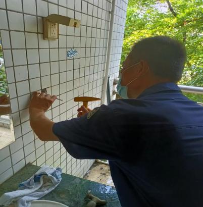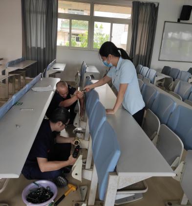 高温天气对于水电维修及动力运行保障是一种考验,但我们的物业工作人员从未退缩。这个暑期可以常常看到他们在抢修水管、在修理损坏设备、在粉刷墙面、在更新井盖及消防通道标识、在安装电缆标识牌、在进行高压电设备维保……暑假期间,两校区维修工单合计超3000单,其中包括大学城完成了1623支光管和338个灯芯的更换,粉刷面积达1080平方,维修课桌椅超500张,更换强弱电间门锁120把;Bwin必赢中国官网完成了超200支光管的更换,更换水龙头约100个,路面修补达100平方。