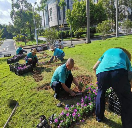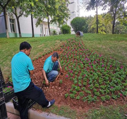 为以更温馨的环境迎接新同学,暑期对学校重点景观包括名人璧、工科楼、天桥、主干道等时花进行更新,增添校园生机,两校区共更换时花超5600 株。