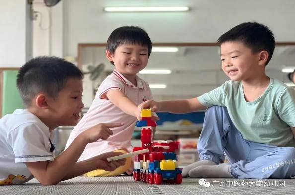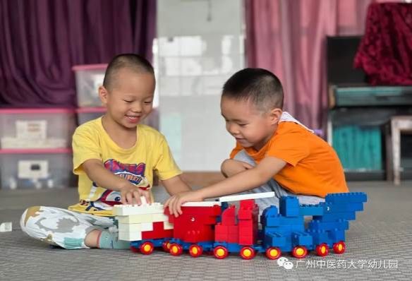 在建构游戏中,孩子感知积木的颜色、形状、大小、空间比例等,根据自己的想法对其进行排列、组合,增强对于数量、结构以及空间的认知。在搭建积木的过程中,通过不断的抓握、拼接、整理等锻炼小肌肉的发展,促进手眼协调能力以及思维能力的提升。