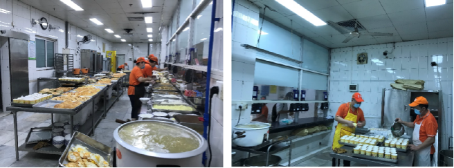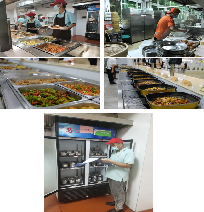 【巳时】9:00-11:00 暖融融的阳光透过玻璃窗洒下, 为校园披上了一件金色的外衣。 食堂的员工紧锣密鼓地为同学们准备着午餐。 洗菜、切配、调味、烹饪。 每个步骤都认真对待, 做到洗净煮透, 保障师生舌尖上的安全。