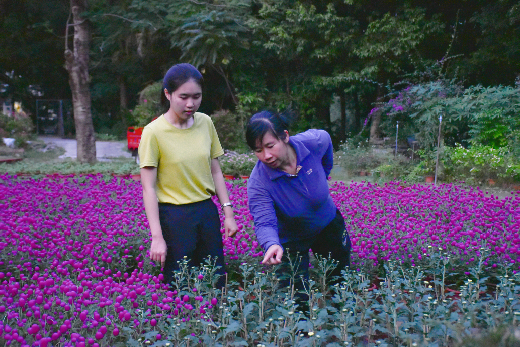 她用花朵装点校园,