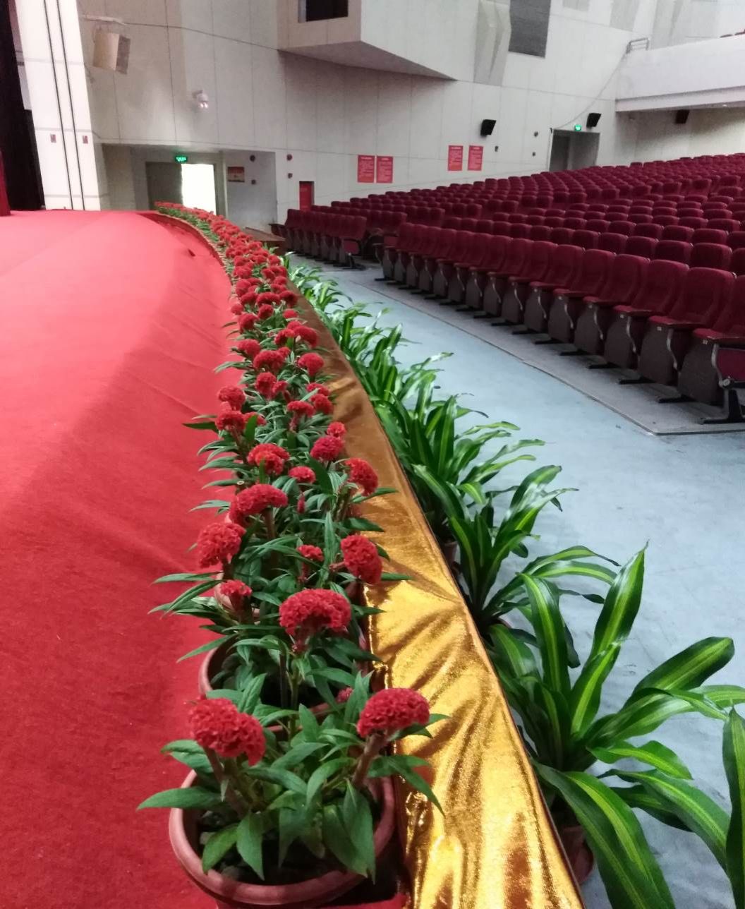 大礼堂舞台边上的鸡冠花
