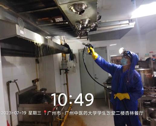 充分利用暑假这一保养“黄金期”,清洗全校食堂的抽排设备和油烟管道;排查各类设施设备的使用情况,对设施设备进行保养和维修;开展除四害消杀工作,采用喷雾剂药物消杀方式,对大厅、走廊、卫生间、下水道、垃圾房、后厨等易聚集蚊蝇鼠患的场所喷洒药物,从源头上减少蚊蝇密度;筑牢食品安全防线,为新学期工作平稳有序开展打下坚实基础。