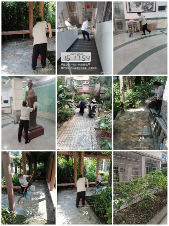 从5月至10月,校园内每月组织开展4次消杀活动,国庆期间大学城校区已连续3天开展集中消杀。工作人员深入各栋楼宇前后庭,全面细致检查校园各个角落,并对绿化树木、下水管道、天面楼顶等易孳生蚊虫的重点公共区域进行药物喷洒,同时清理垃圾杂物、卫生死角,从源头上有效遏制蚊虫的繁殖。