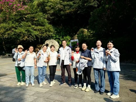 冬日的暖阳中,后勤工会会员们身着统一服装,列队随大部队精神抖擞地登上了白云山顶,在“黄河石”广场合影“全家福”。