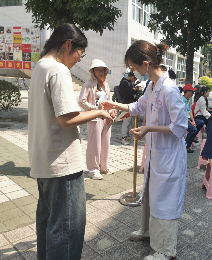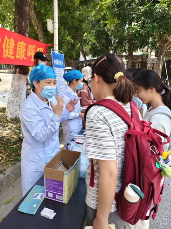 由大学城门诊部医护人员和志愿者组成的服务团队,通过现场答疑、发放《结核病防治手册》等宣传资料,向师生员工详细讲解结核病的传播途径、预防措施及规范治疗流程。为提升互动效果,还进行有奖问答环节,并赠送免费送“健康小礼品”,得到了师生员工的积极参与和响应。