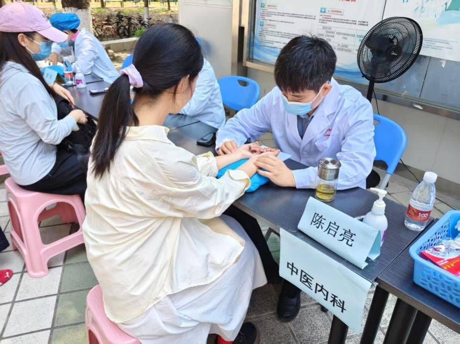 本次义诊活动,除了门诊部的吴成林主任、冯启锋医生和陈萍医生参与以外,还专门邀请了基础医学院的许晓伍老师、陈启亮老师,针灸康复临床医学院林涵老师以及李珂老师等多名专家。义诊现场人气满满,前来参与的师生员工络绎不绝。