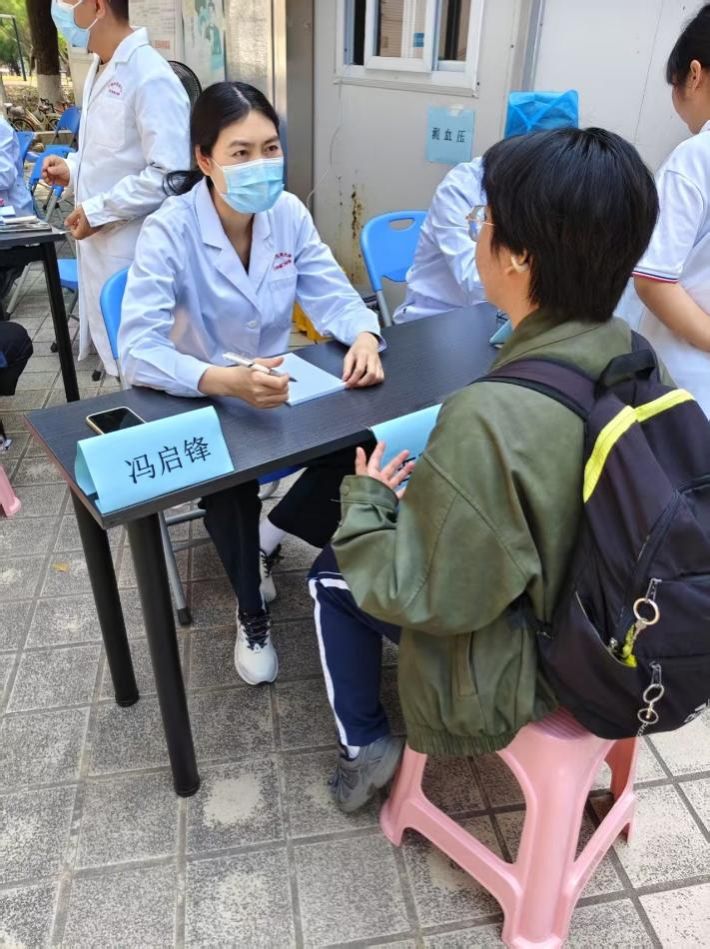 各位医护志愿者们热情高涨地为师生员工开展内科、外科、妇科、针灸科等义诊项目,同时提供血压测量、健康教育、保健咨询等服务。他们将雷锋精神融入到实践中,为学校师生员工传递健康防范意识。