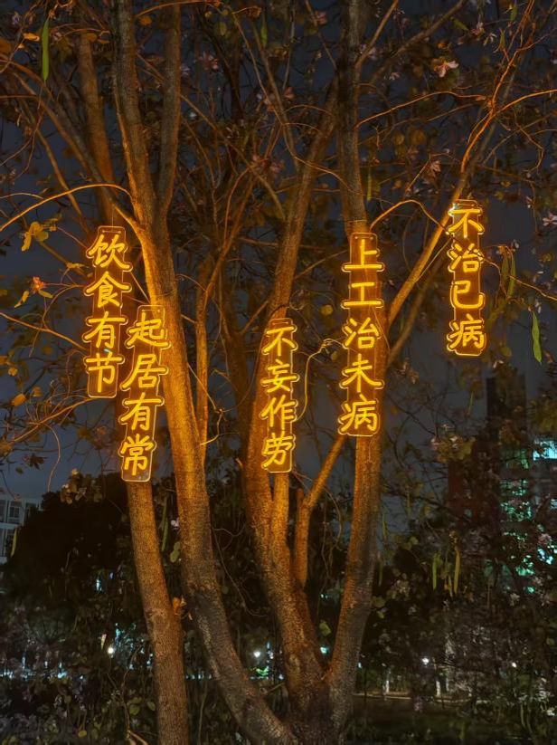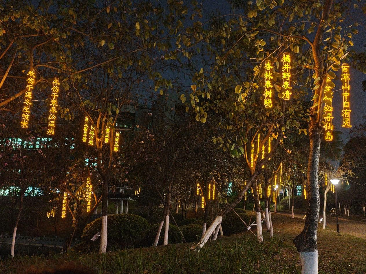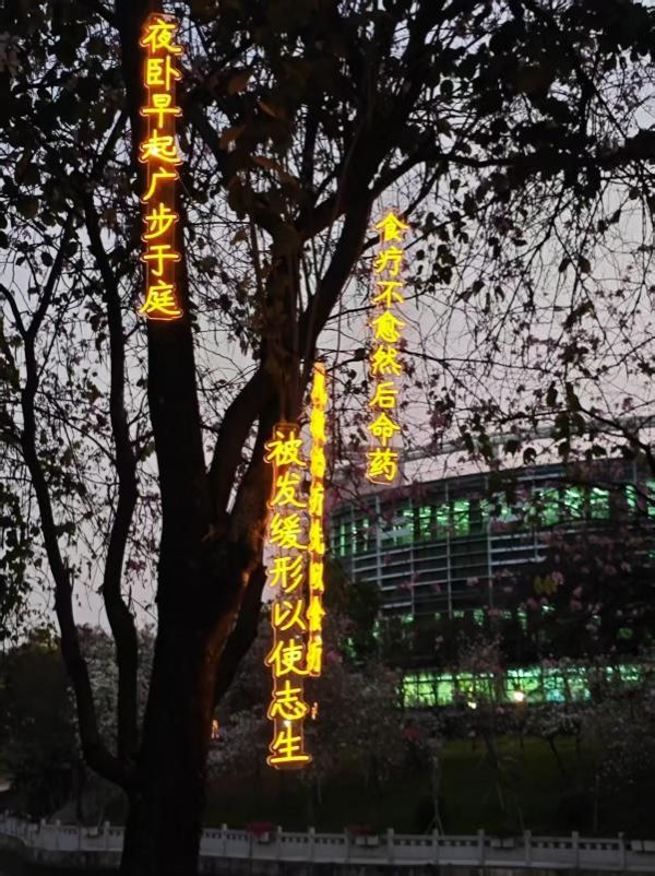 一个个蕴含中医药知识的文字灯牌悄然挂上枝头,