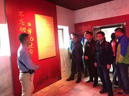 后勤党总支一行47人首先在潘伟增书记的带领下,面对庄严的党旗,所有党员重温入党誓词。在讲解员的详细介绍下,聆听了《东江纵队之歌》,然后认真参观学习,站在一幅幅珍贵的文物面前,听着讲解员的解说,更加直观地了解了黄沙坑东江纵队的历史,更加深刻地领会到今天的辉煌来之不易。