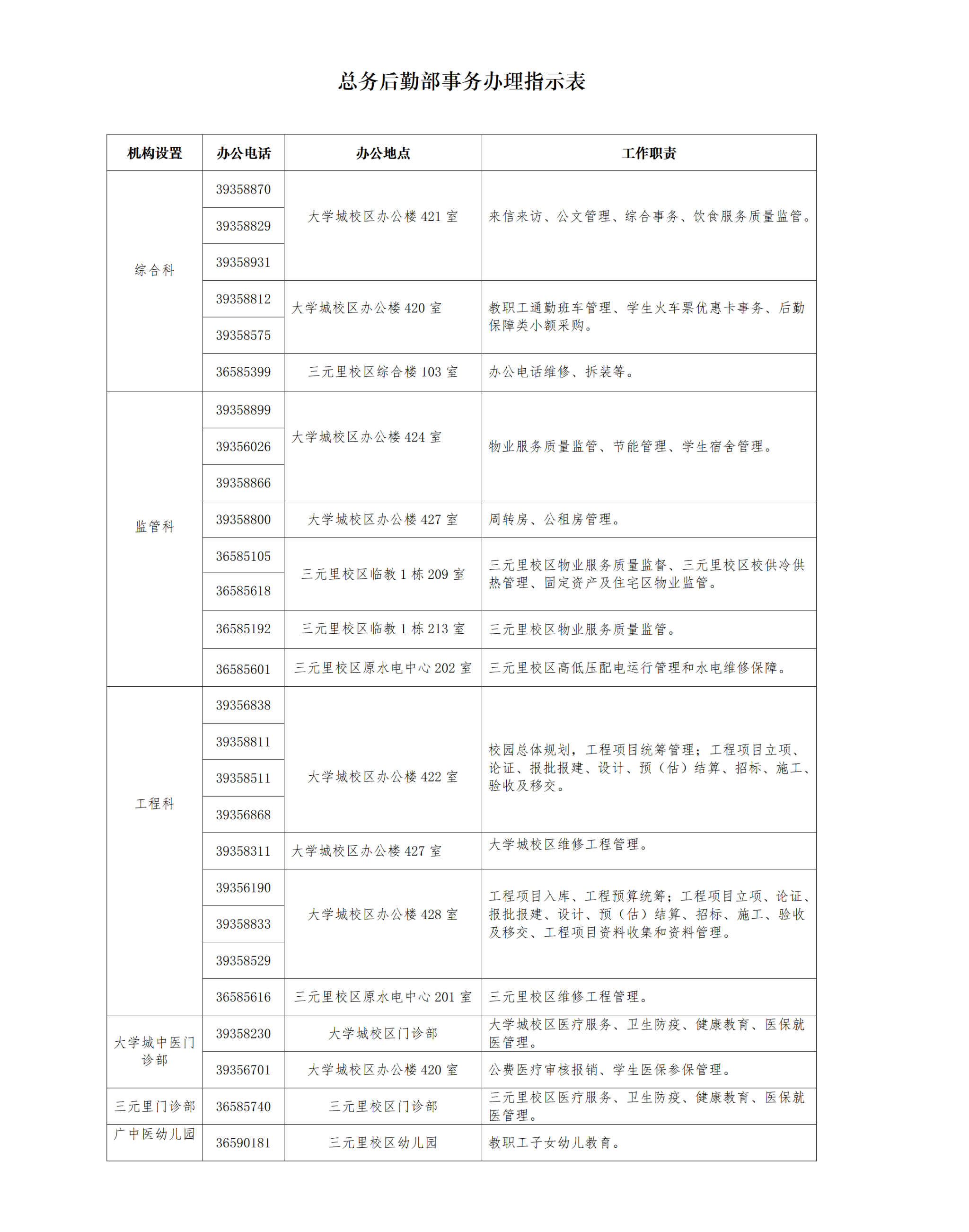 总务后勤部事务办理指示表